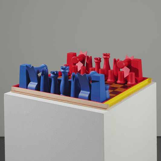 Calder's set challenges tradition: the queen is larger than the king, reflecting his belief in matriarchal values and in balanced relationships where women guide men. An oversized knight disrupts the board, inviting deeper attention - both to the game and to life. And rather than black and white, Calder used red and blue, rejecting notions of binary opposition or built-in superiority.