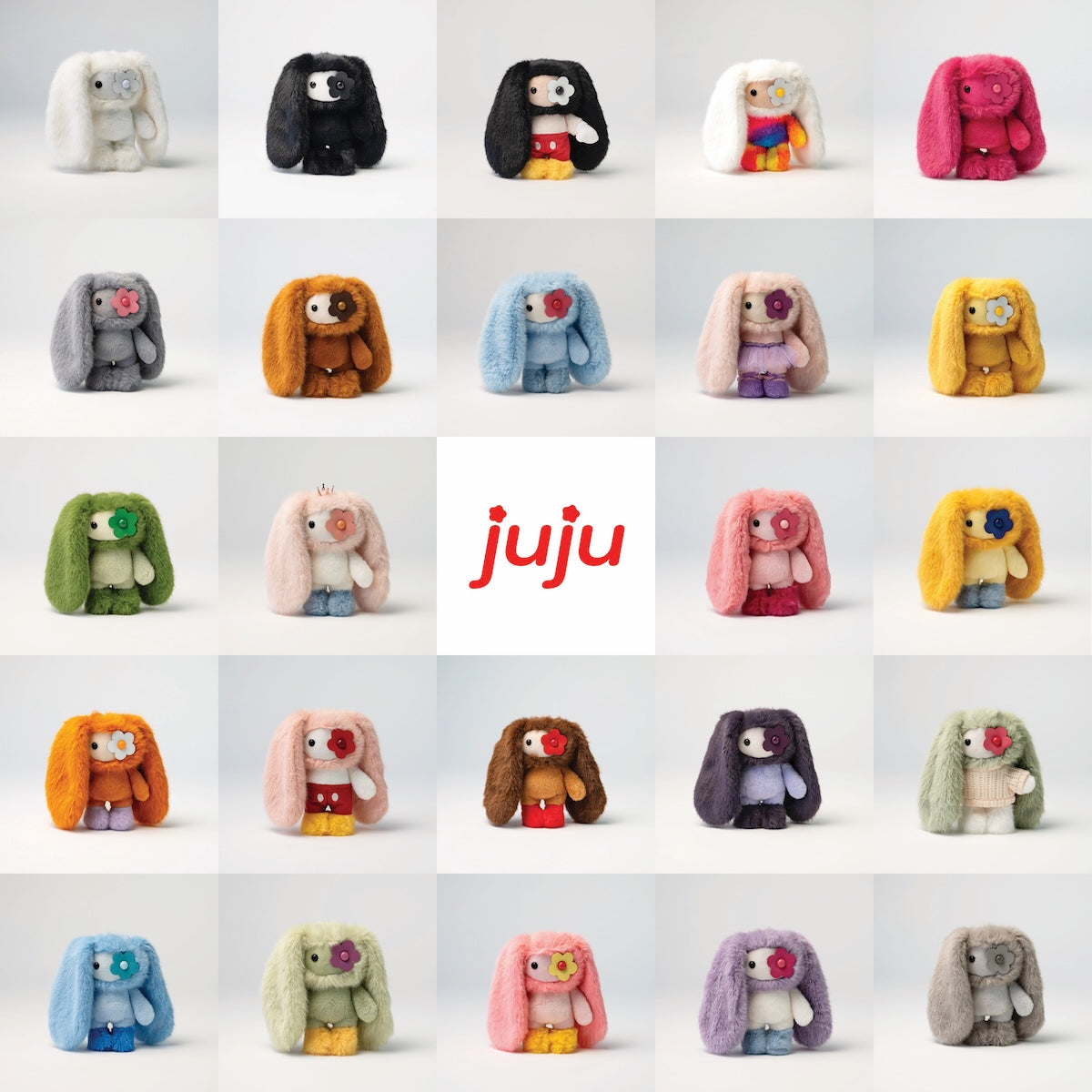 Juju has been imagined as a collectable keychain, introduced in 24 distinct iterations, each produced in varying quantities and offered in blind boxes, ensuring that every piece becomes a rare treasure within her whimsical universe.