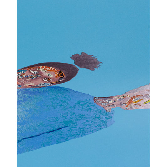 Two to Tango, marks Emmanuel Taku’s editions debut, graphically reinterpreting his distinct approach to portraiture through elaborately layered screenprints with intricate collage elements. The saturation color and density of ink achieved with more than 20 colors per print showcase the artist’s adept use of tone to create an image that sits at the intersection of depth and flatness, creating a visual tension that draws in the viewer.