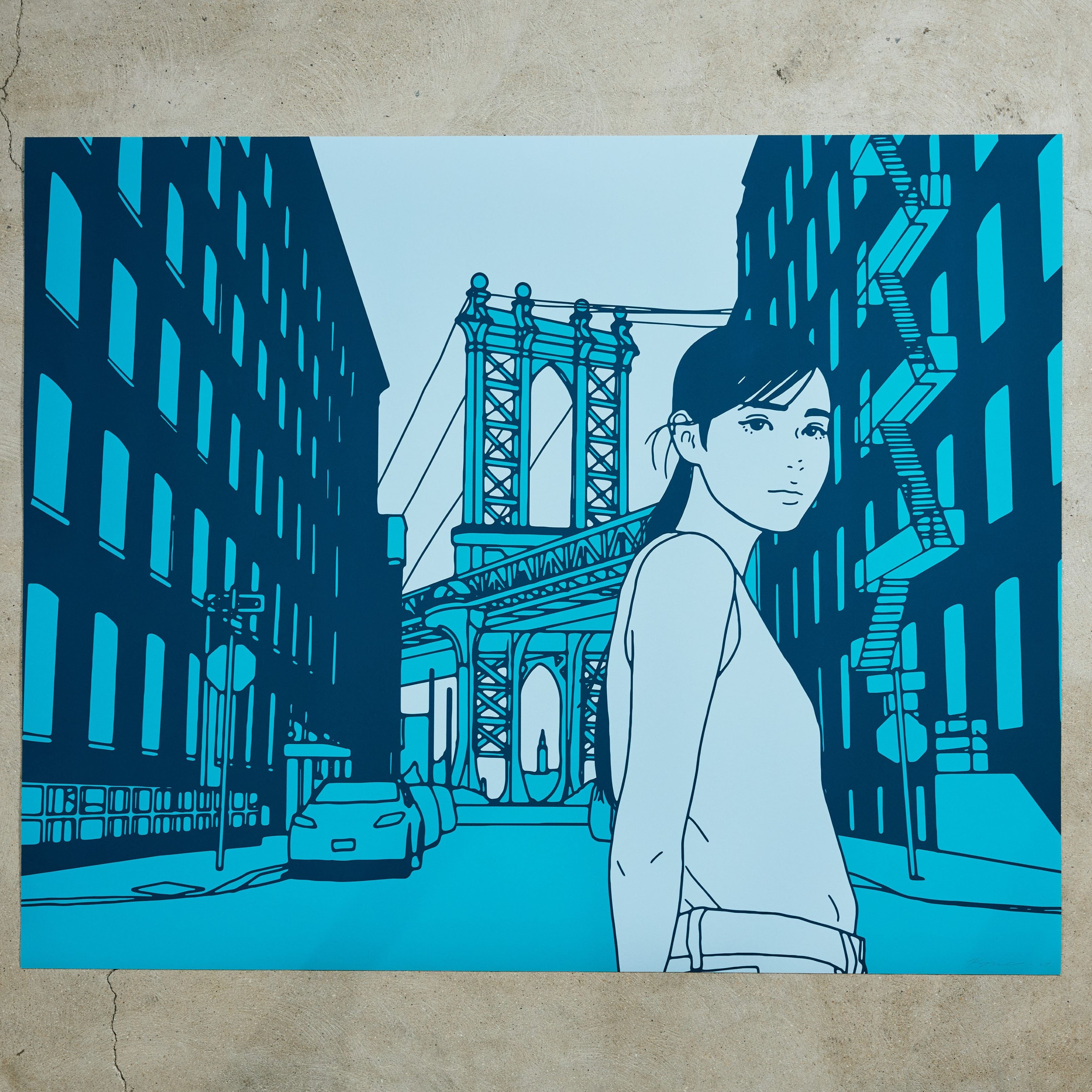 PhillipsX together with DROPSHOP is pleased to present KYNE Paintings for the Drop featuring the artists' iconic figures within the metropolitan landscape of New York City, and by an equally iconic landmark: the Manhattan Bridge.