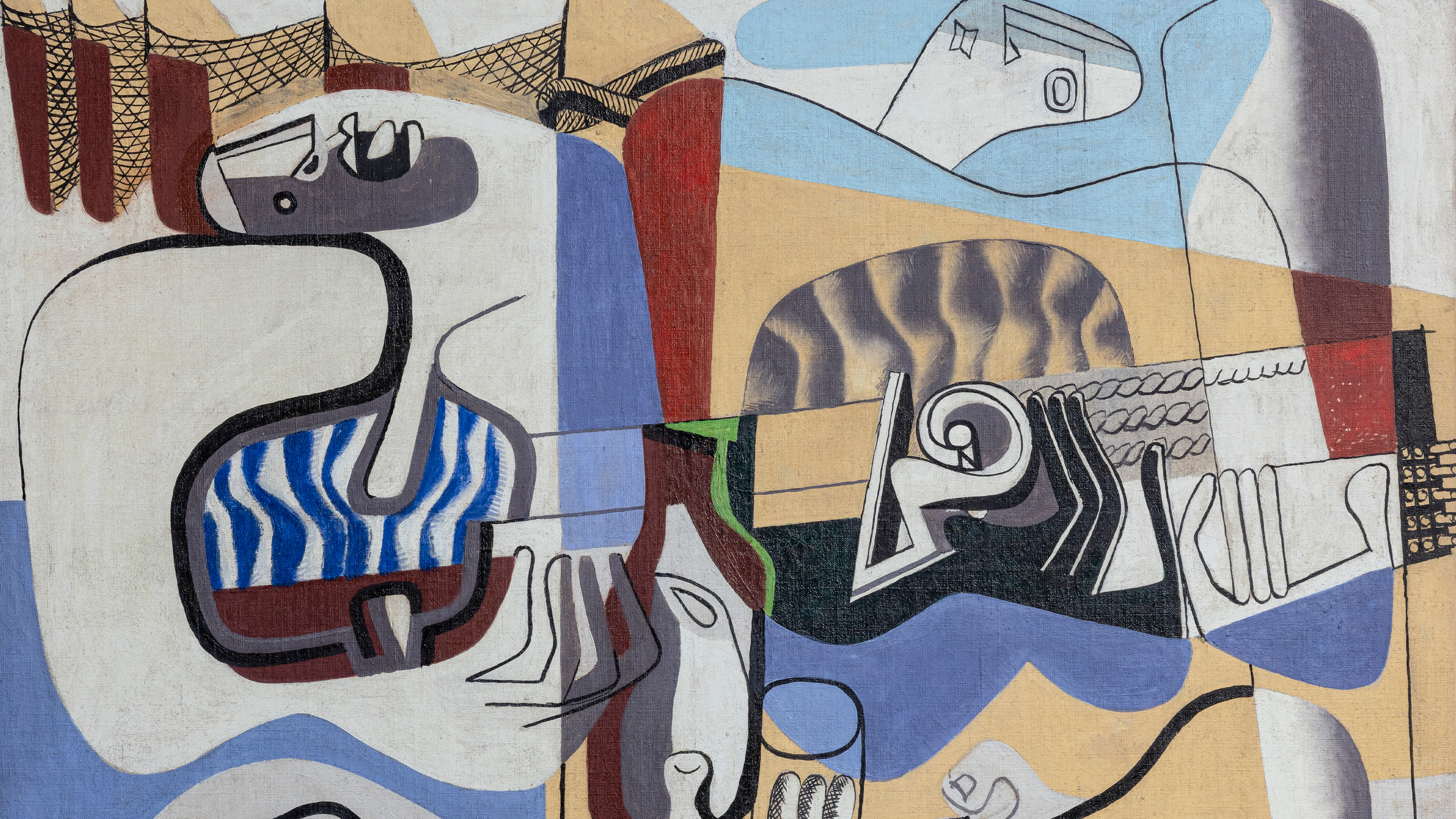 As of 1917, Le Corbusier lived and worked mainly in Paris, though his practice remained international throughout his career. He entered the world of painting after meeting artist Amédée Ozenfant. Together, they founded the Purist movement in 1918, which focused on still life: everyday objects rendered as geometric forms and flat planes of color. Le Corbusier considered painting a vital component of his aesthetic philosophy, writing, “I think that if any meaning is attributed to my work as an architect, it is to this secret labor that one must attribute its deeper value.”