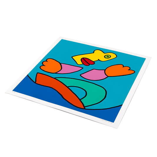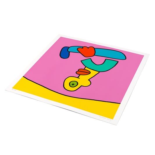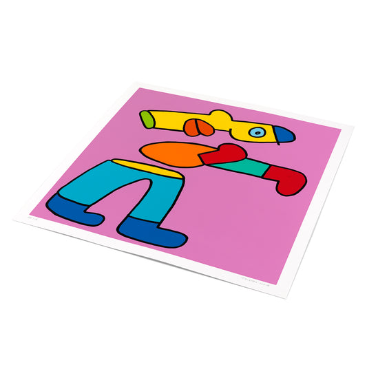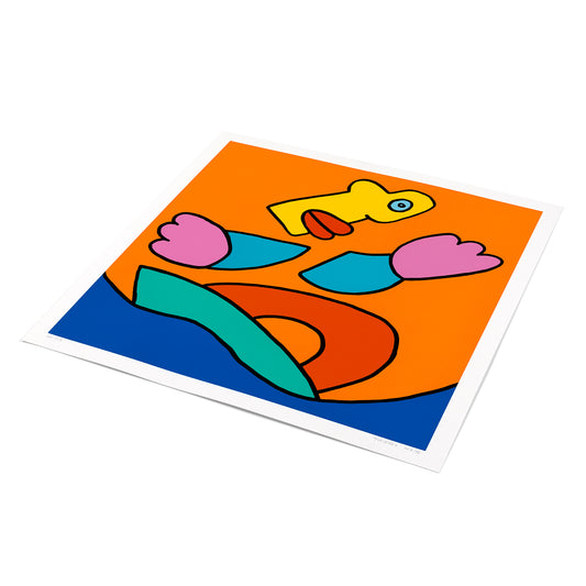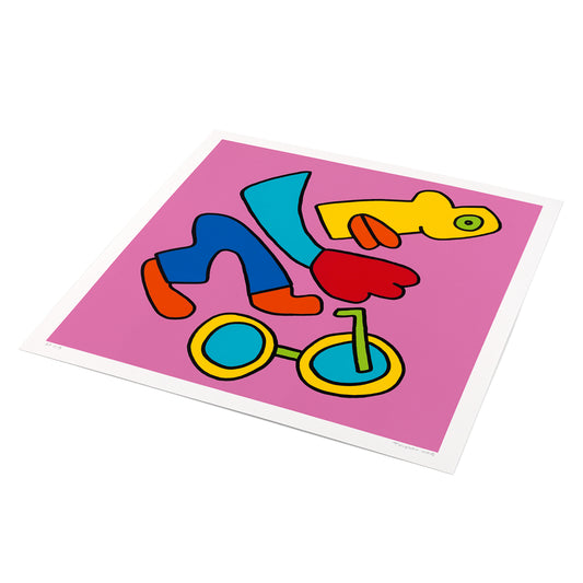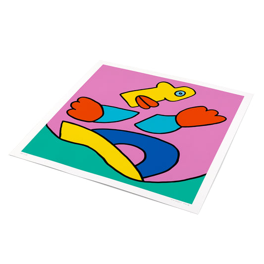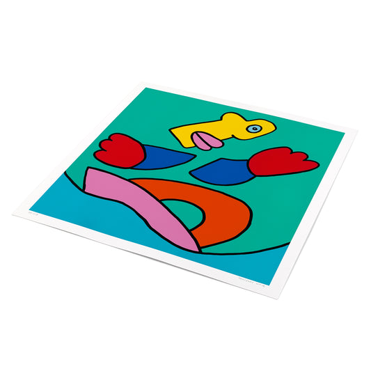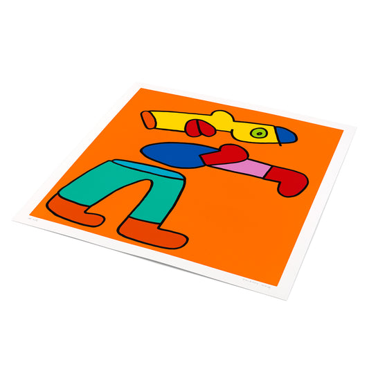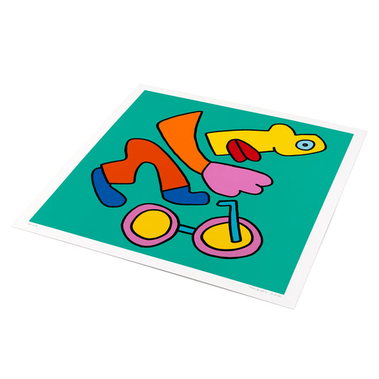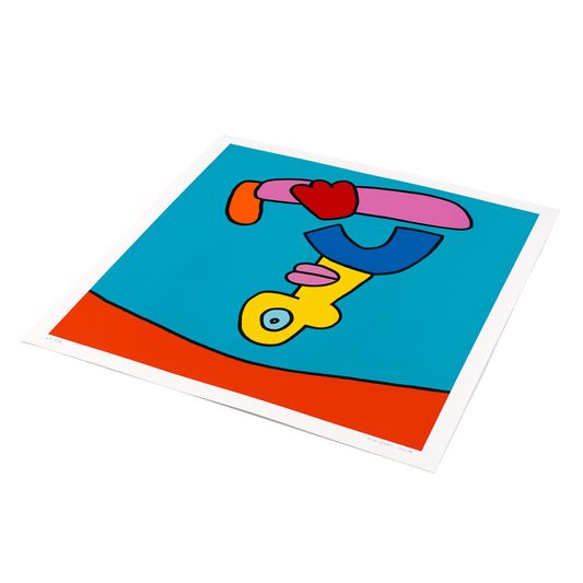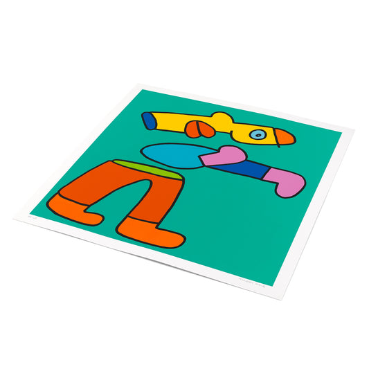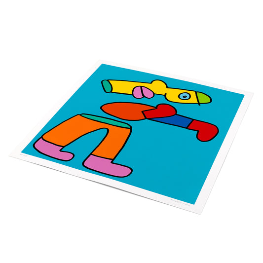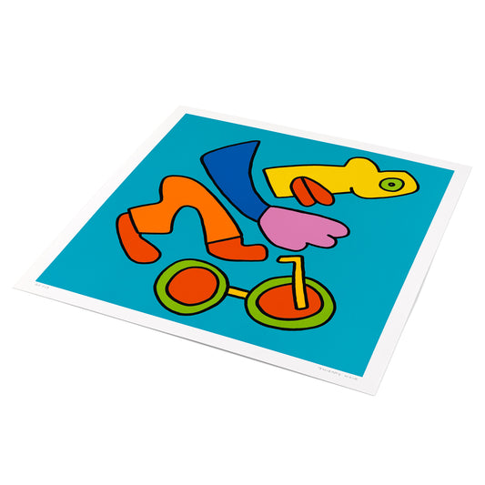 In Noir’s own words “my art was born for screenprinting with the bright colors and shapes surrounded by the blackline”. Created with master printers in London using an only analogue process, the sporting forms of BMX Racing, Boxing, Surfing and Trampoline have been originated directly by the artist from brush to screen. In homage to the repetitive philosophy of the multiple, each sport is presented in four colourways of blue, orange, pink and teal.