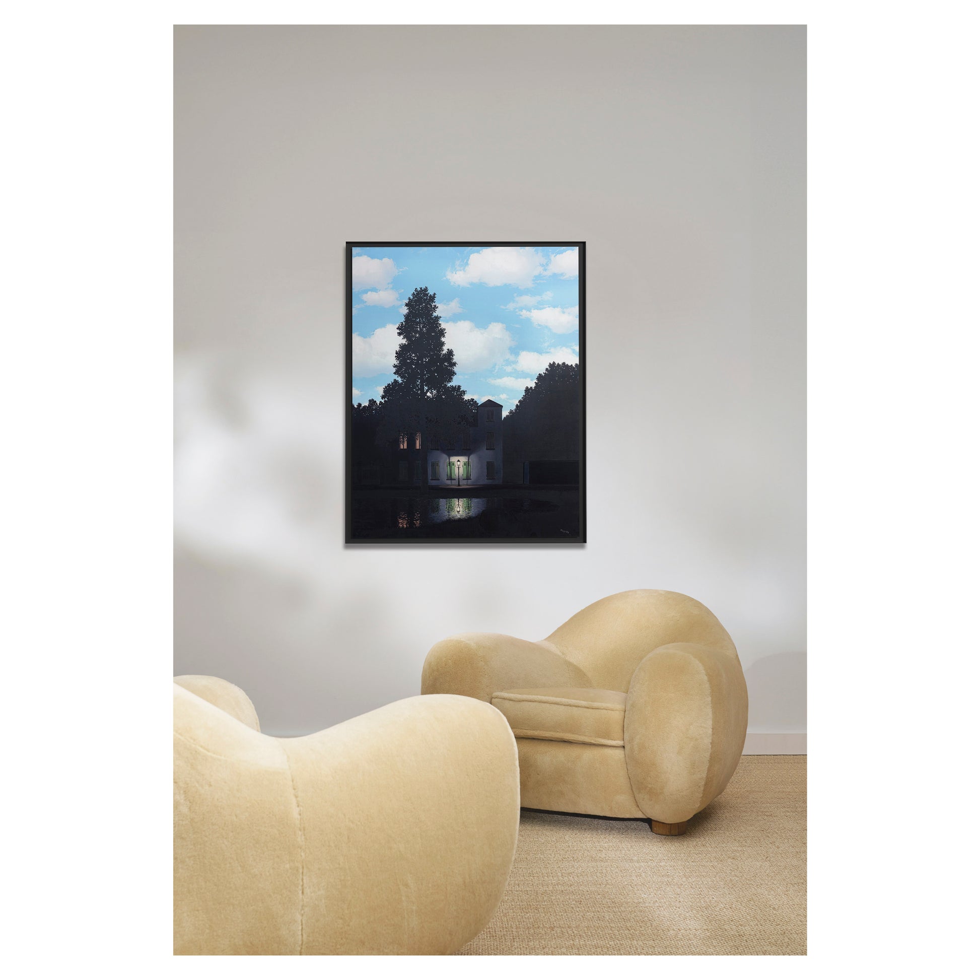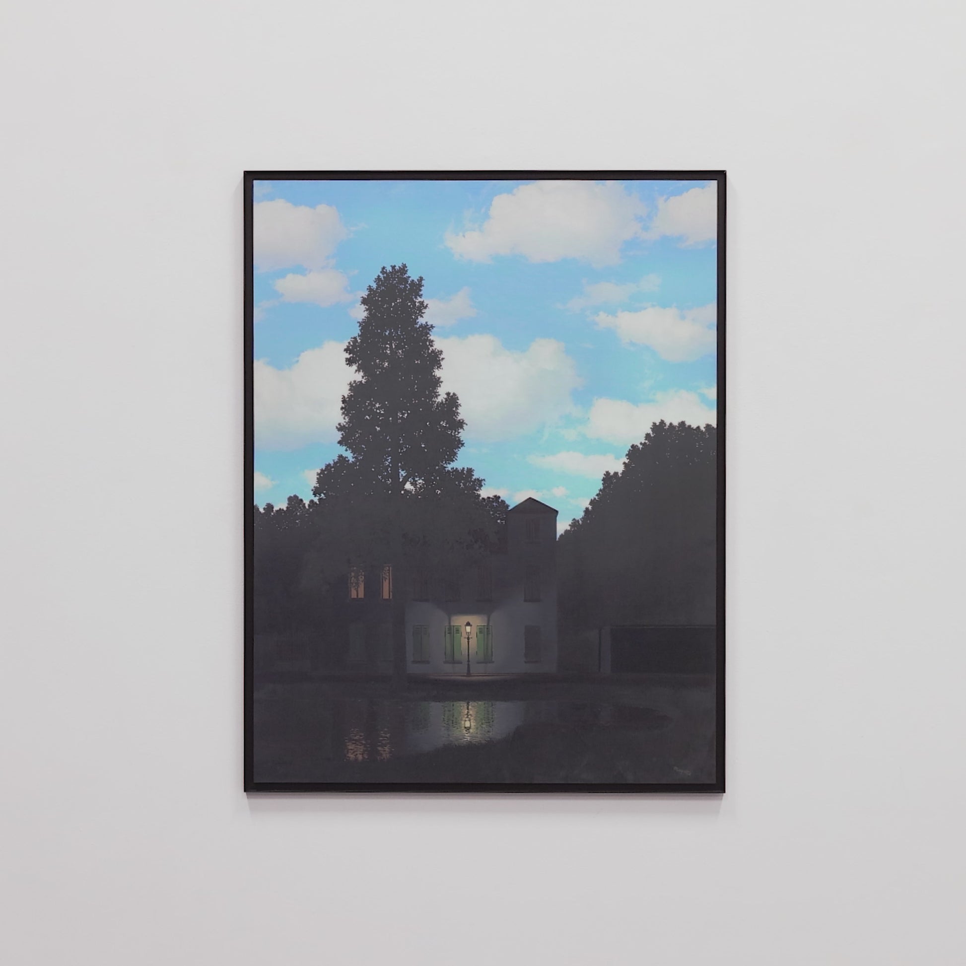 L'Empire des Lumieres is a series of paintings by Magritte, developed across 27 works, 17 in oil and 10 in gouache, between the 1940s and 1960s. These works portray the paradoxical image of a nighttime landscape set beneath a bright, sunlit sky, an iconic exploration of surrealism's interplay between reality and illusion. Today, works from this series are exhibited in major institutions including the Guggenheim and MoMA in New York, the Guggenheim in Venice, and the Royal Museums of Fine Arts of Belgium.