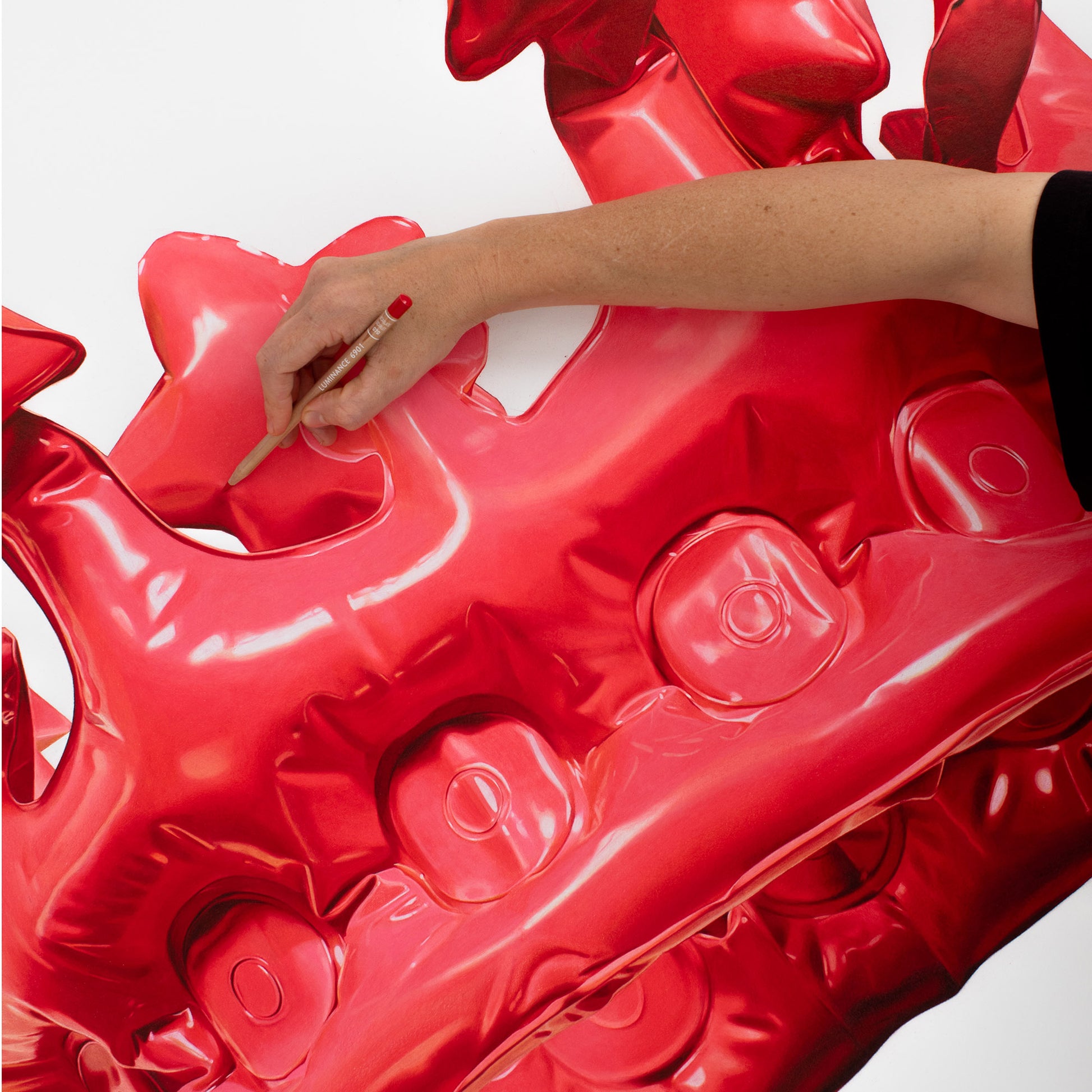 I find drawing extremely cathartic and the hyperreal has become my signature style. AIR heroizes the inflatable crown on which Crown Volume I was conceived on an epic scale which took me 45 days to complete. The title of the work will memorialize the experiential component of this project which is taking place at Phillips New York headquarters on 19 August.
