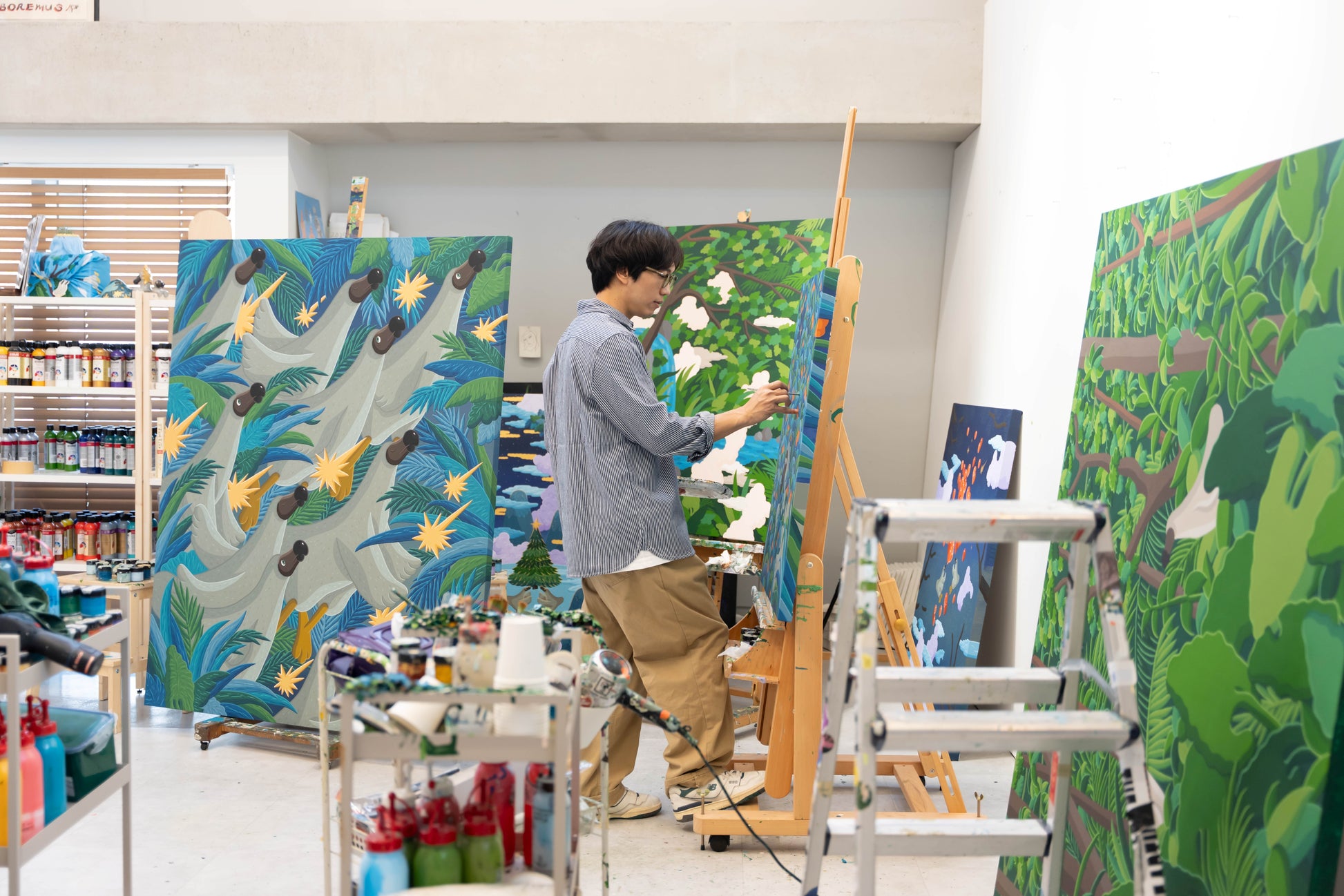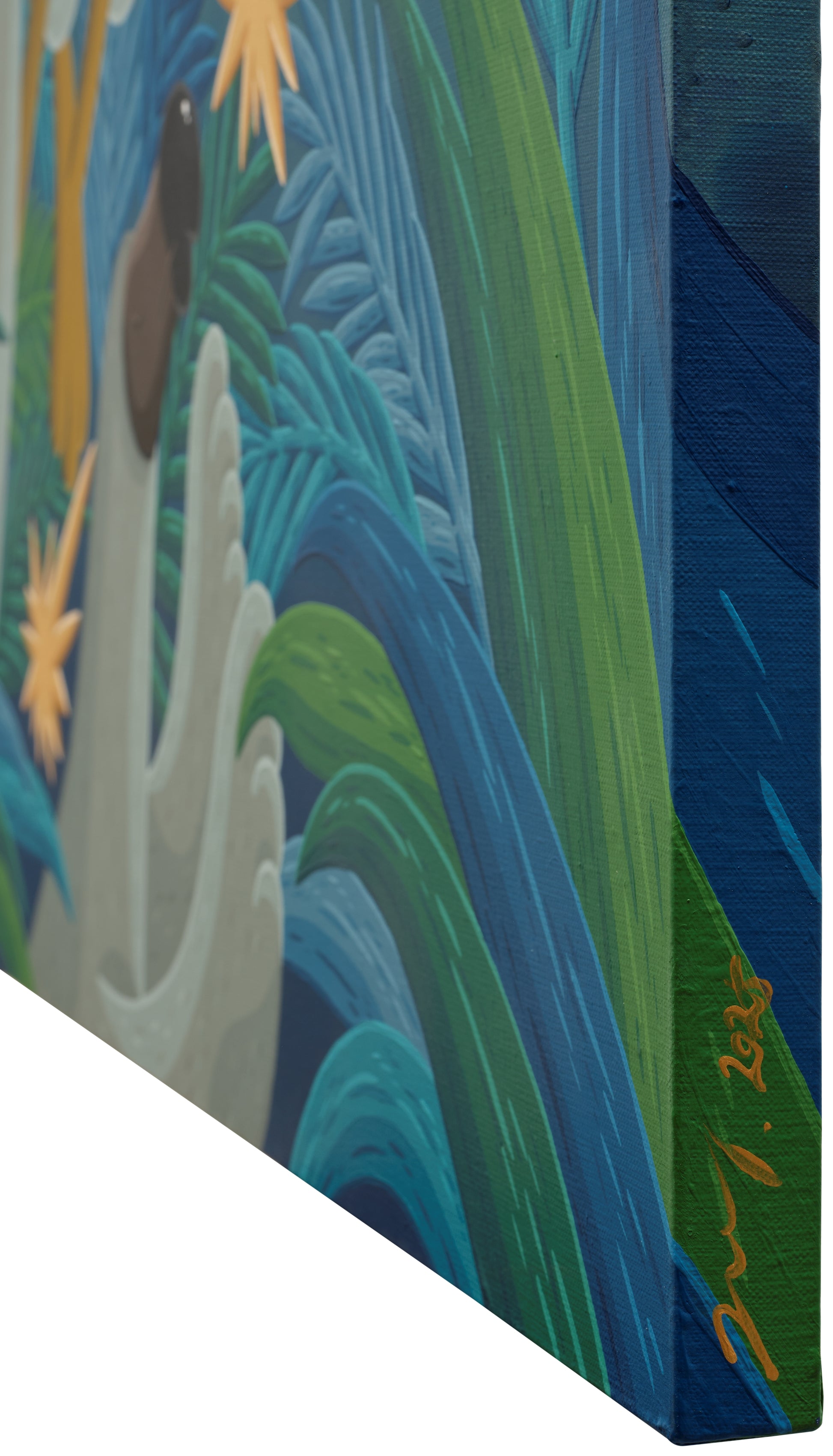 Authenticity: Signed and dated “Kim Sunwoo 2025” lower right turnover edge; signed, titled and dated “Starfall through the wild canopy 2025 Kim Sunwoo” on the reverse