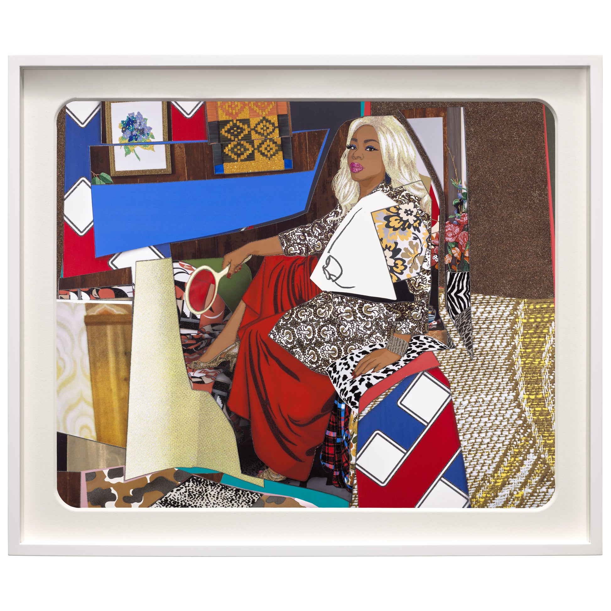 In celebration of award-winning artist Mickalene Thomas’s upcoming show "All About Love" at The Broad Museum, this limited-edition print employs a variety of printing techniques and unconventional materials that Thomas has become known for over the course of her career. Its elaborate composition centers around one of Thomas’s muses, Din, who has been featured in her work for over a decade. Out of the artist’s many sitters, Din displays a distinct aptitude for transformation and effortlessly engages with her luxurious environment.