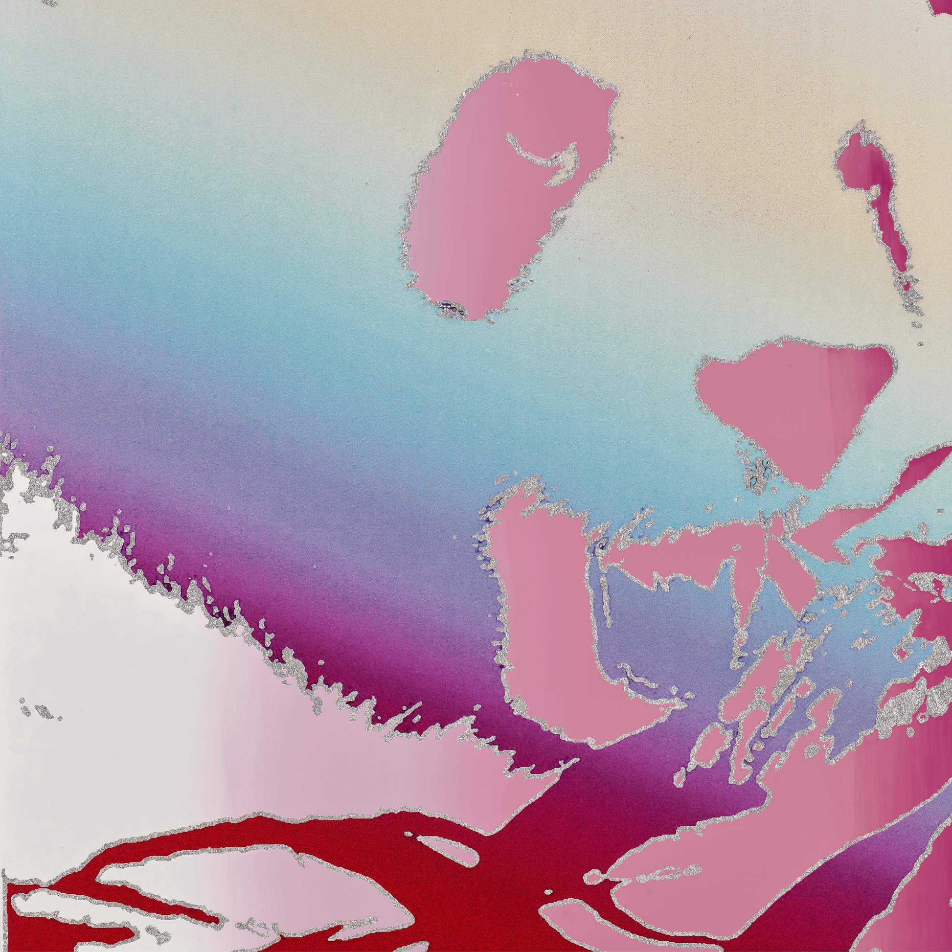 Medium: Digital UV and Hand-pulled Enamel Silkscreen on Silver Washi Paper